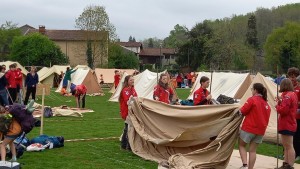 Montage des tentes avant la pluie sur le stade de Mane. GDC.ZG