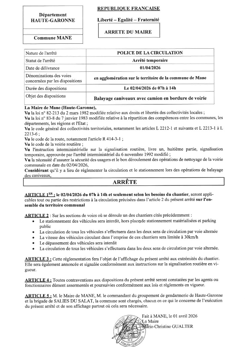 La Mairie de Mane vous accueille :